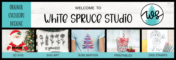 ➤ White Spruce Studio has digital downloads with original and exclusive SVG vector cut files & printables including sublimation & digi stamps.