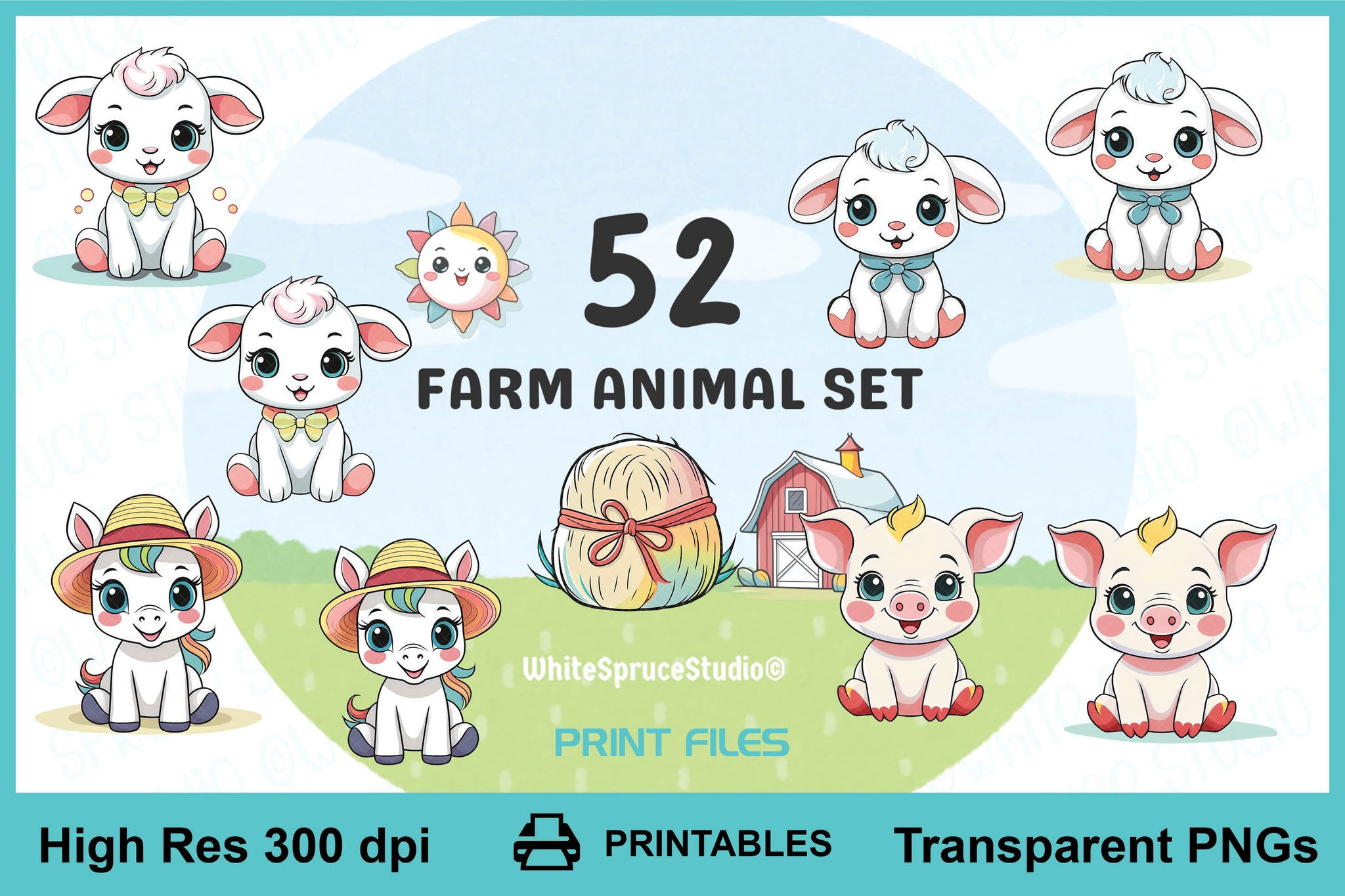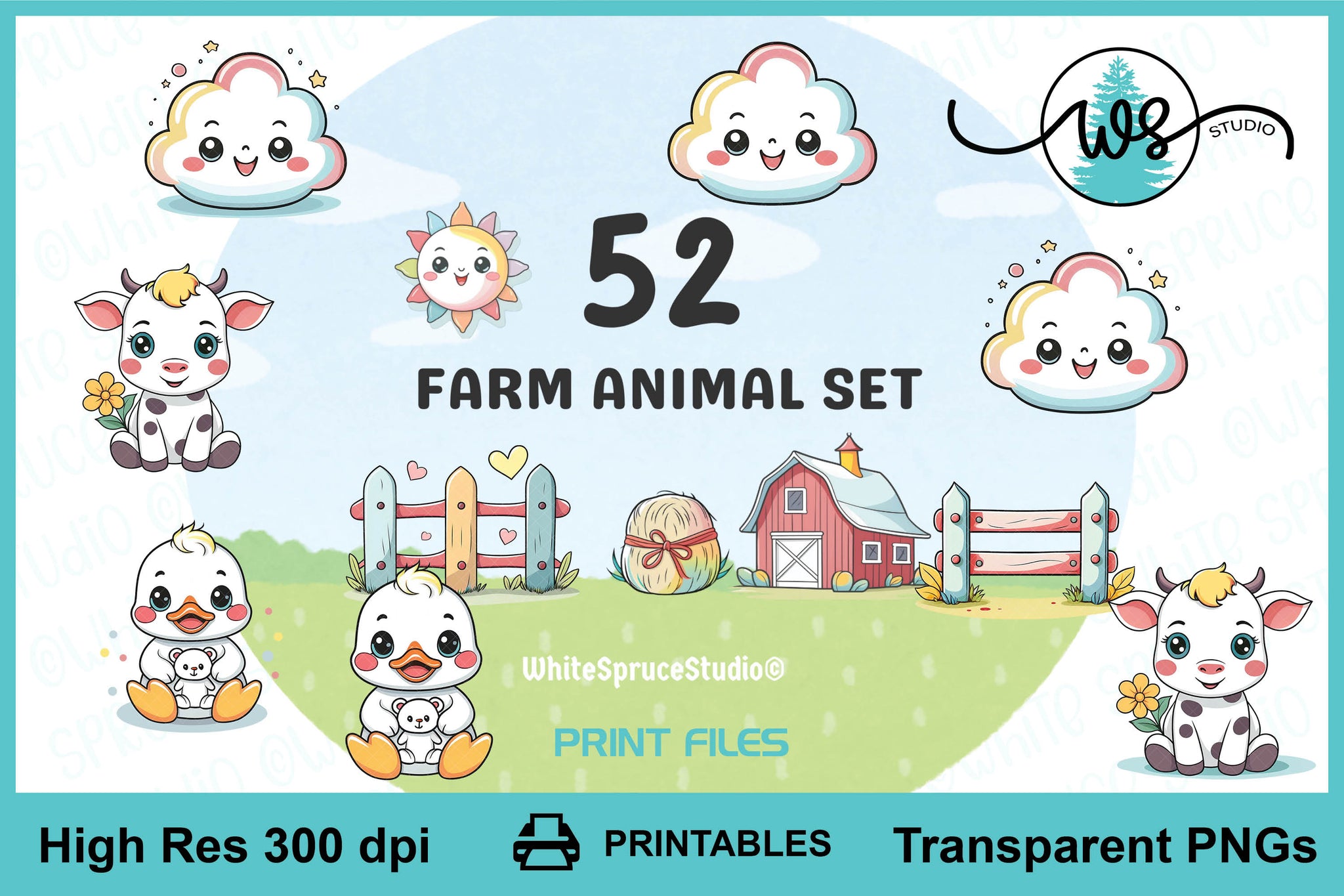 Baby Farm Animals Clipart Bundle Nursery Invitation PNG Printables