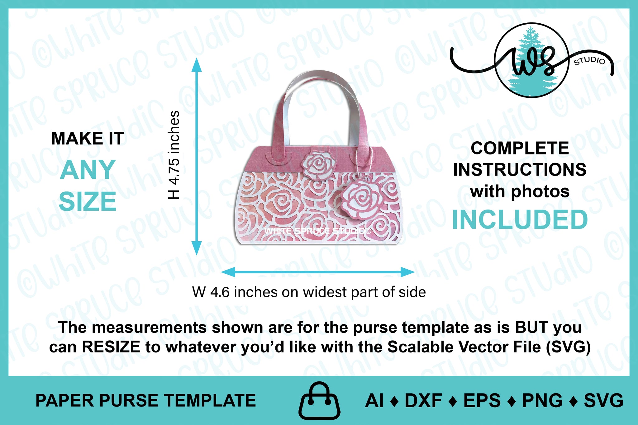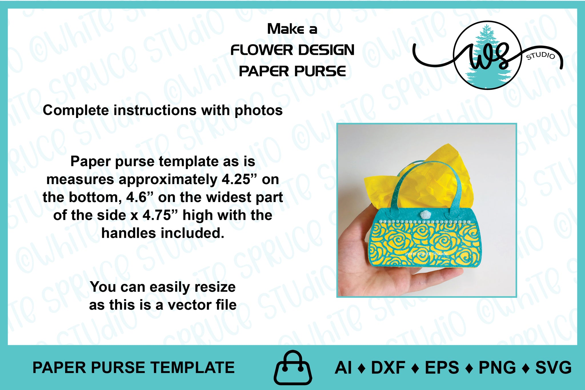 ♦︎ This is a DIGITAL PRODUCT. The purse template is a digital craft pattern designed by White Spruce Studio especially for cutting machines. Also included are complete instructions with step-by-step color photos.