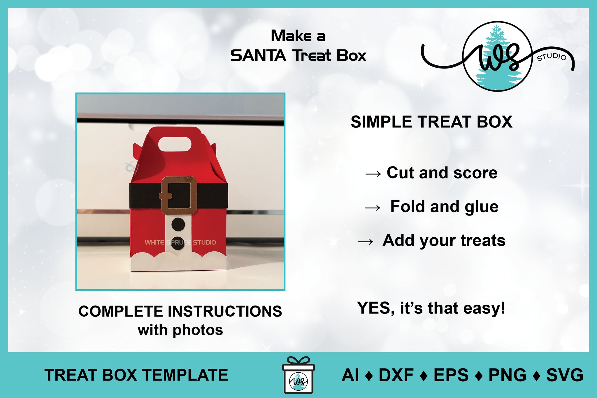 ❤️ ALL the SVG DESIGNS INCLUDED to make the 3D SANTA TREAT BOX.