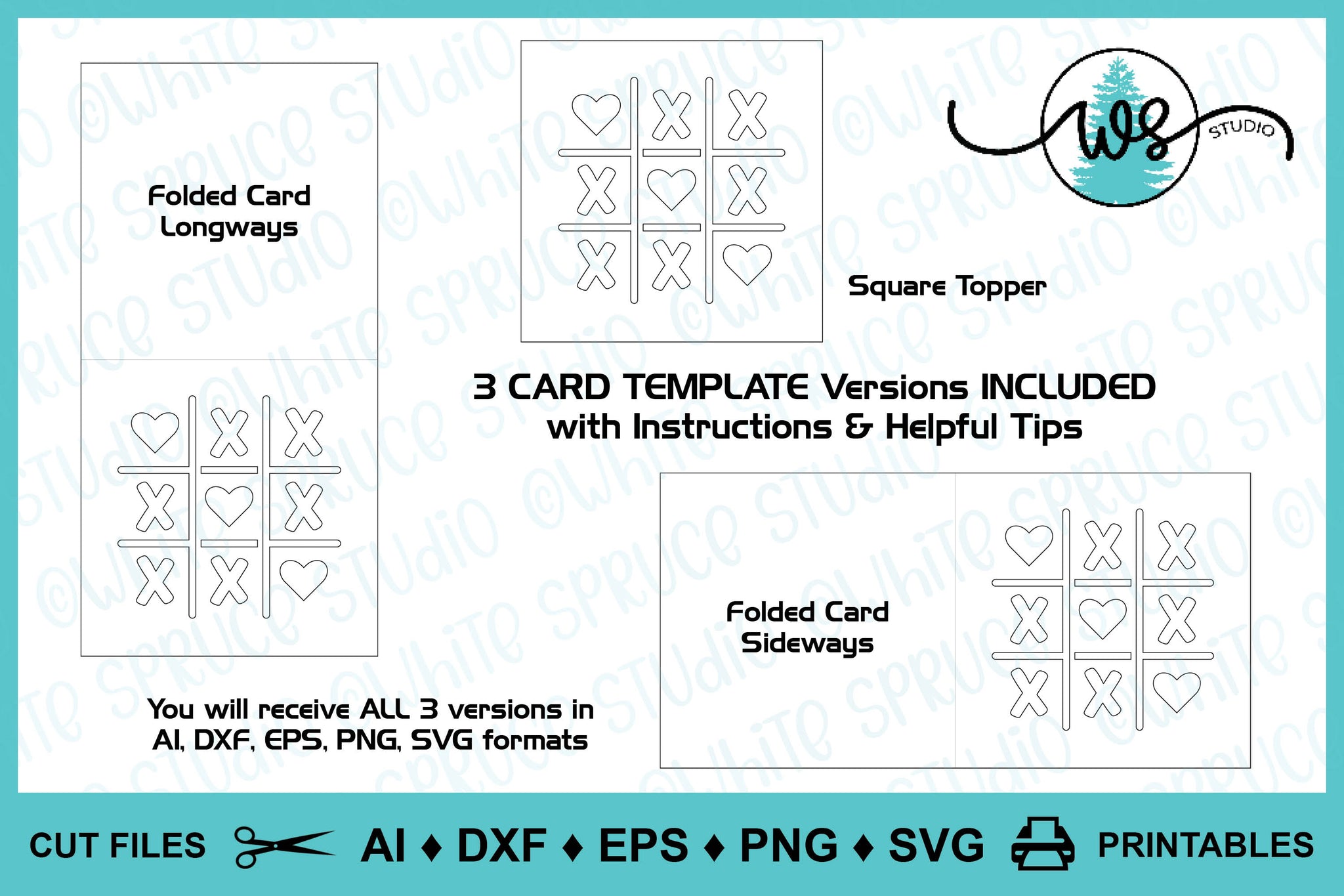 ♦︎ SVG Valentine, anniversary, special occasion card and card topper to make yourself with card templates to use with a Cricut or cutting machine featuring a fun tic tac toe design to gift for couples, friends and children.