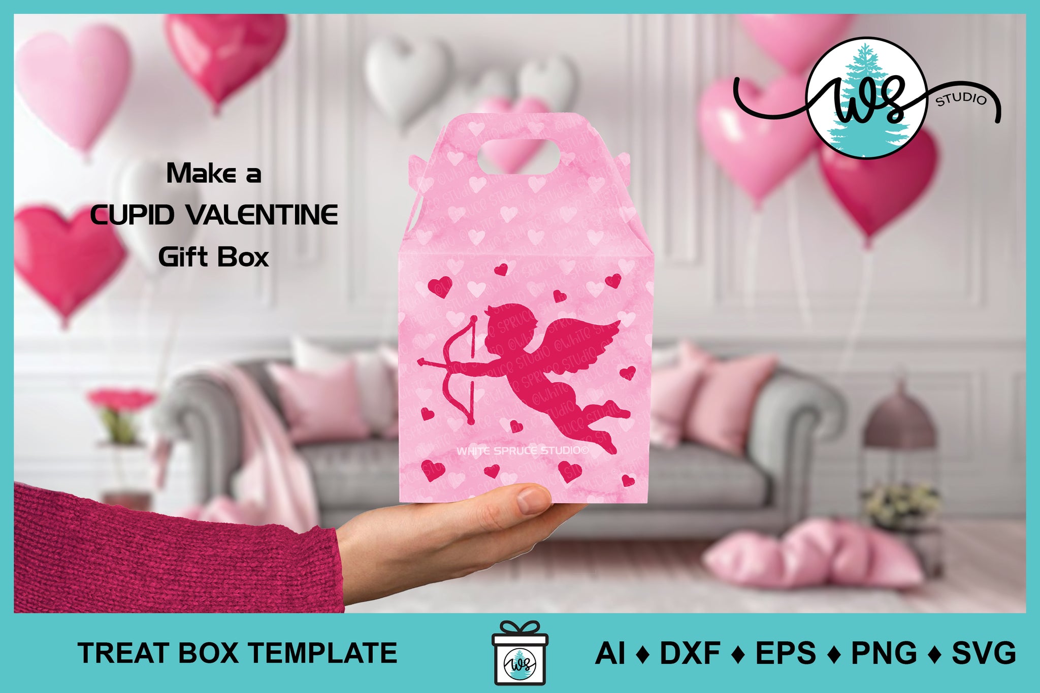 ♦︎ ALL the SVG DESIGNS INCLUDED to make the 3D PAPER VALENTINE CUPID GIFT BOX.