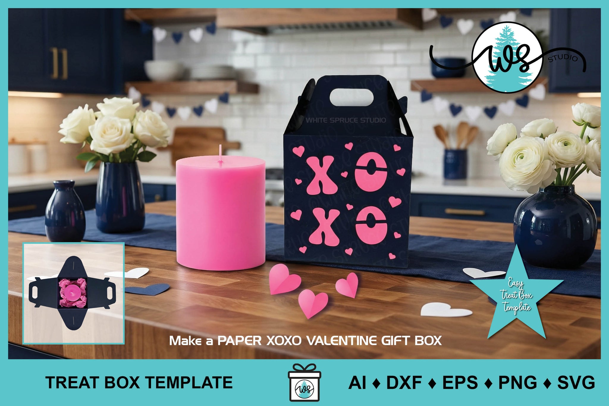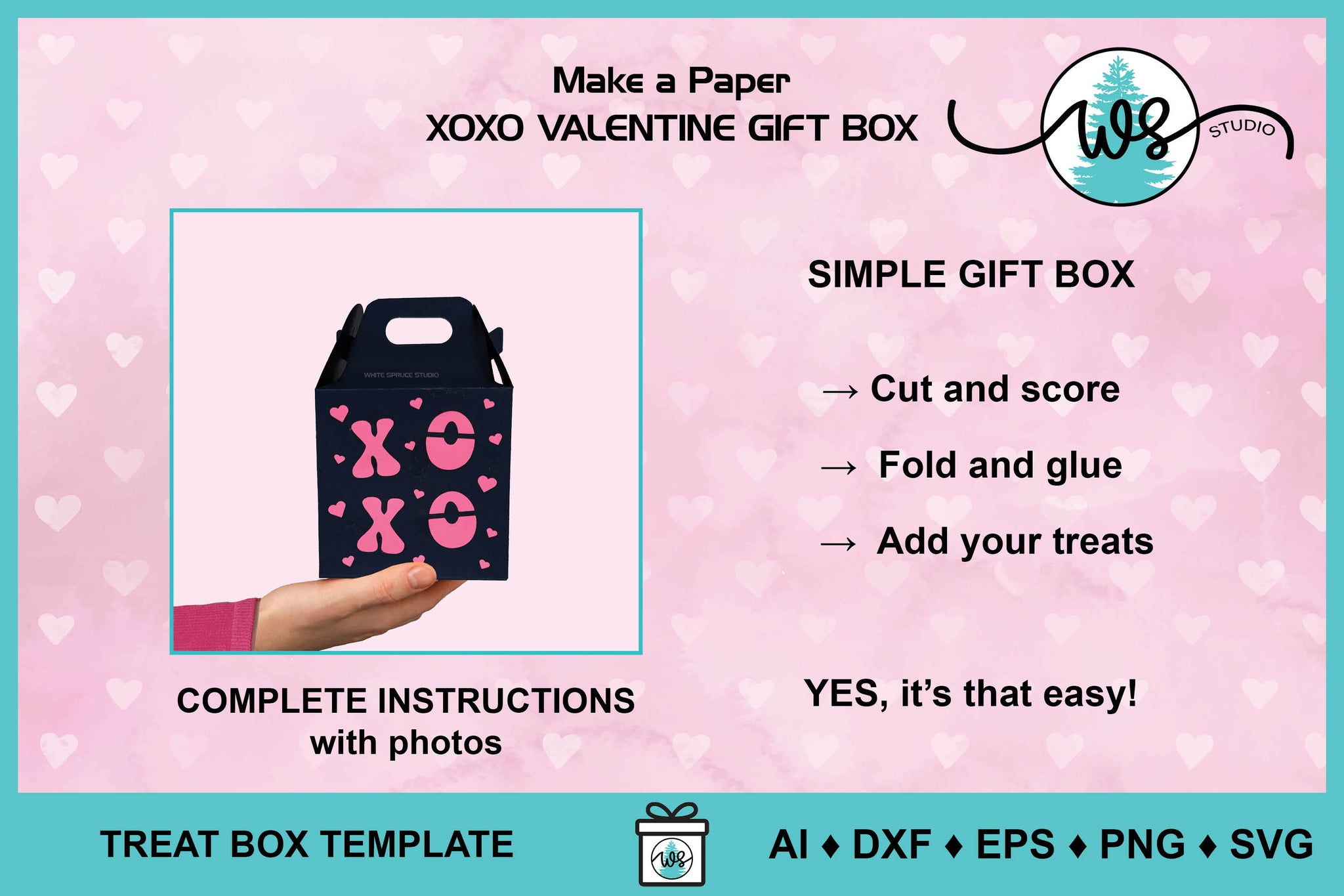 ALL the DESIGNS INCLUDED to make the XOXO VALENTINE GIFT BOX.
