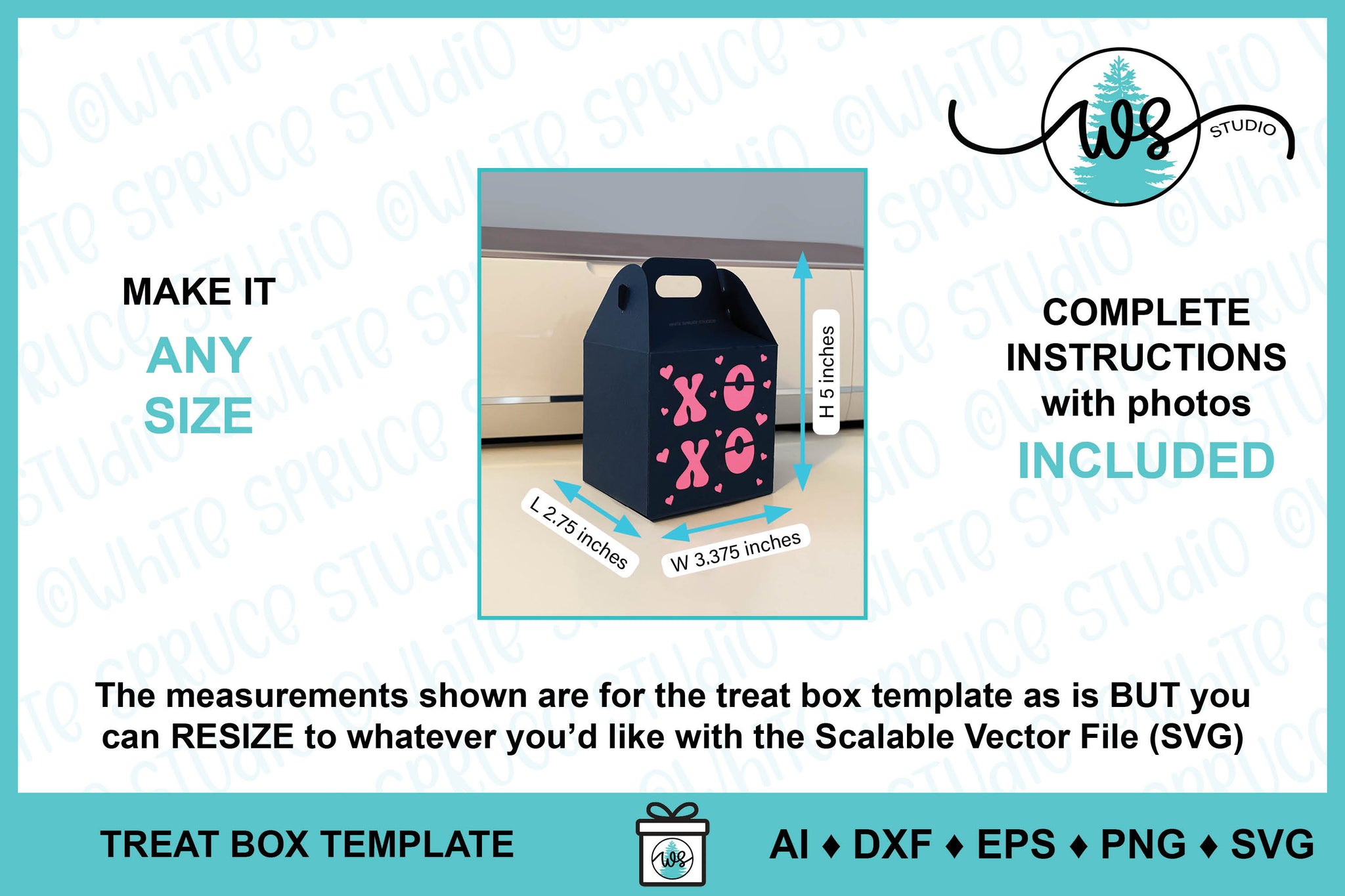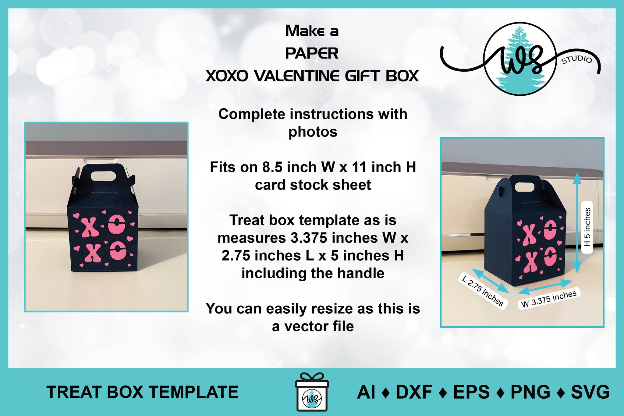 ♦ This is a DIGITAL PRODUCT. The box template is a digital craft pattern designed by White Spruce Studio especially for cutting machines. Also included is a PDF with complete instructions and step-by-step color photos.